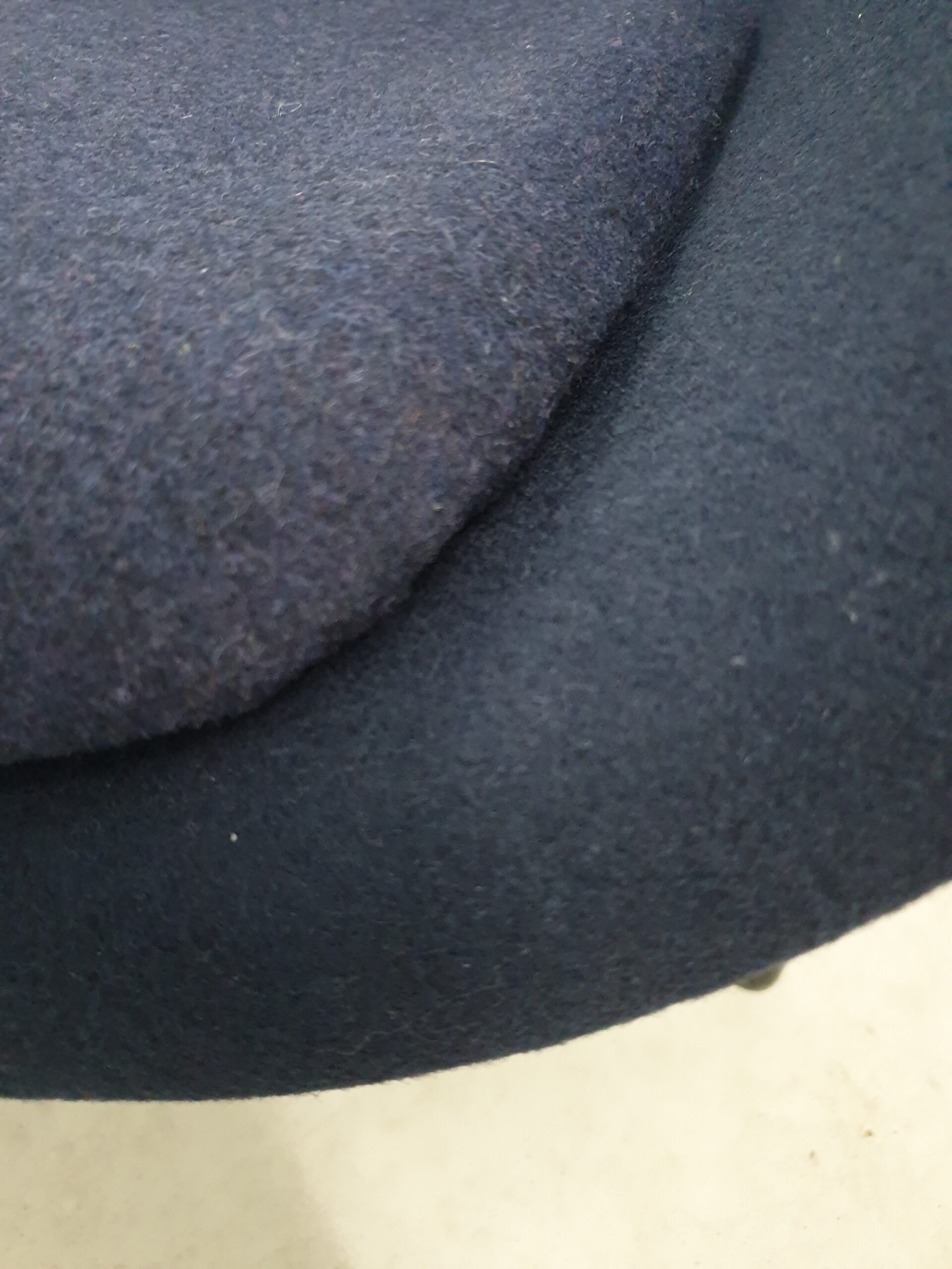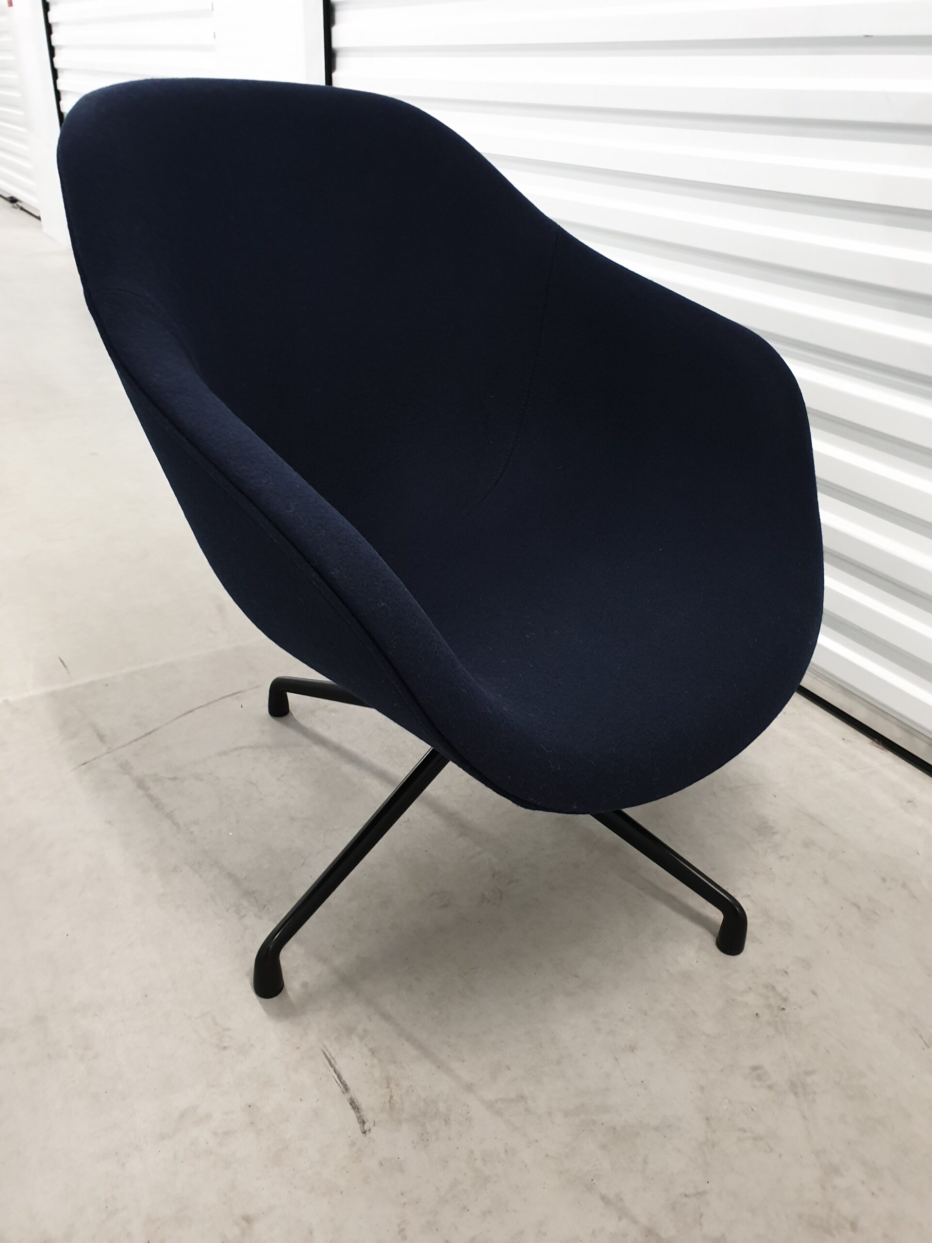 De stoel heeft door zijn donker blauwe bekleding en het zwarte draaibare onderstel een zeer luxe uitstraling. Het kussen is uitneembaar en uitgevoerd in een iets lichtere kleur voor een mooi effect.